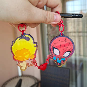 DQD personnalisé personnalisé Anime en forme de coeur porte-clés magnétique acrylique charme arc-en-ciel époxy Couple correspondant porte-clés